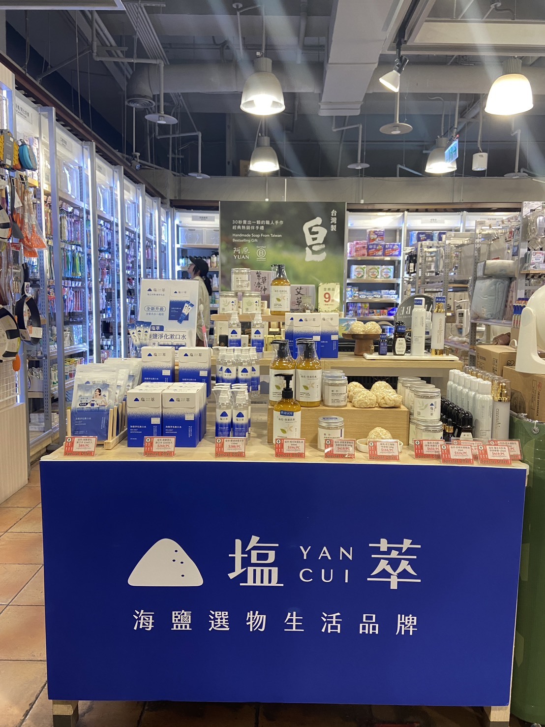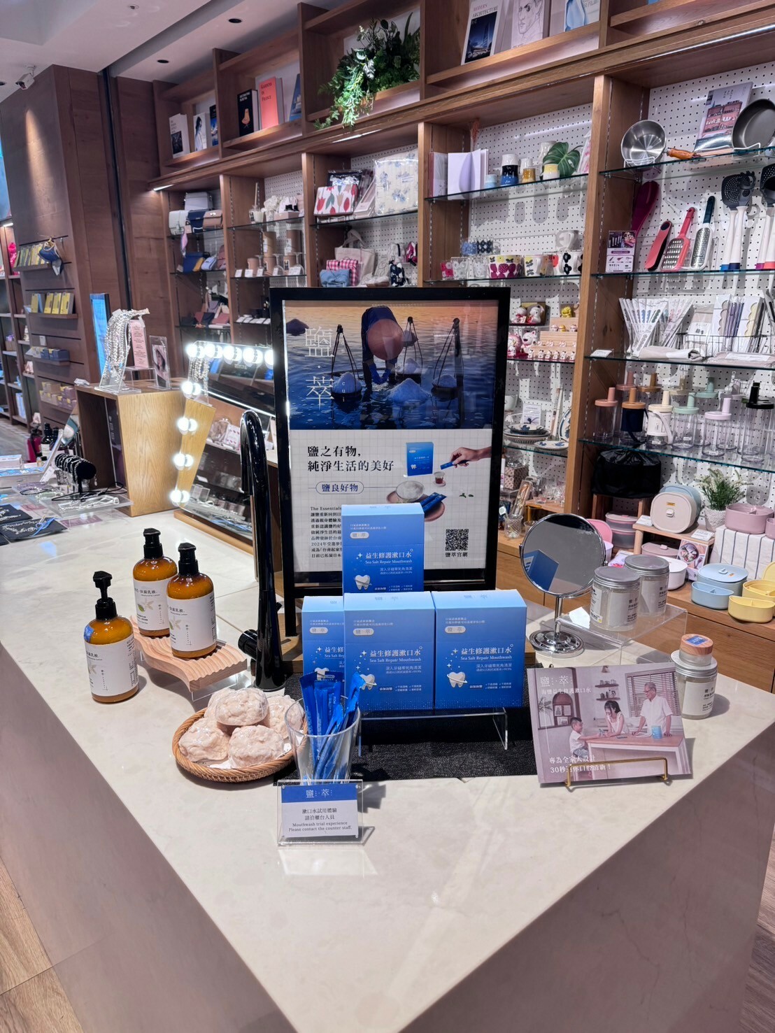 可購買與體驗品項:海鹽淨化漱口水、海鹽牛奶皂、鹽滷液態牙膏、海鹽洗髮霜、保濕身體乳、滷水精油皂、香水護髮乳